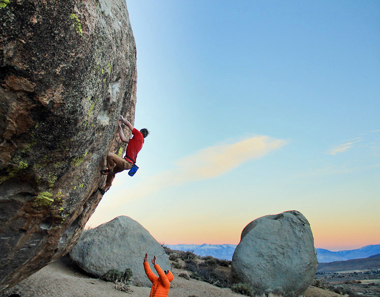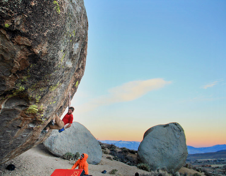As mentioned in an earlier post, Elliot Faber recently added The Elevator a line parallel with Transporter Room on Grandpa Peabody at the Buttermilks. In addition to this, he has now completed ZAP, another project he had been eying that branches left out of The Elevator.